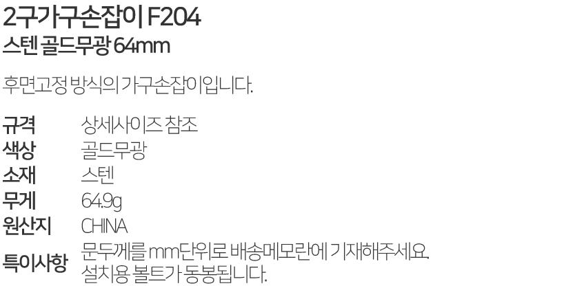 2±¸°¡±¸¼ÕÀâÀÌ F204 ½ºÅÙ °ñµå¹«±¤ 64mm