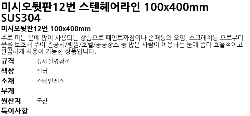 ¹Ì½Ã¿ÀµÞÆÇ12¹ø ½ºÅÙÇì¾î¶óÀÎ 100x400mm SUS304