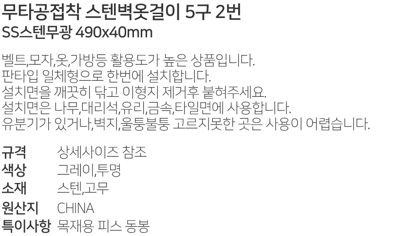¹«Å¸°øÁ¢Âø ½ºÅÙº®¿Ê°ÉÀÌ 5±¸ 2¹ø SS½ºÅÙ¹«±¤ 490x40mm